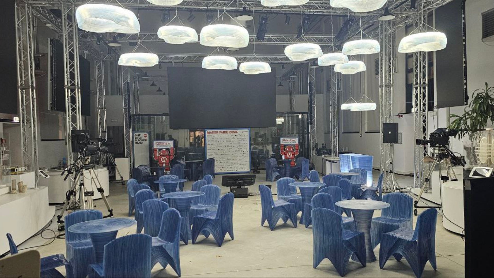 Ogni dettaglio è stato pensato per essere modulare e riconfigurabile, consentendo al layout di mutare in sintonia con il ritmo degli eventi. Il risultato è un ambiente che sembra vivo — adattabile, sostenibile e profondamente connesso allo spirito della Maker Faire, fatto di innovazione continua.
